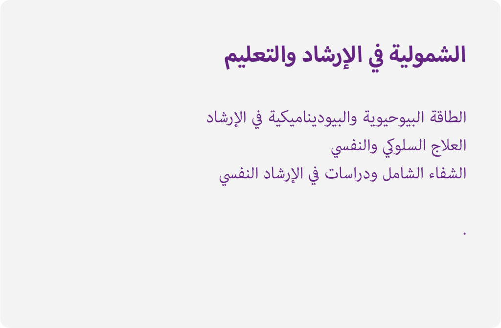 هي دورة مدتها ثلاث سنوات في العلاج الشمولي وتقديم المشورة لأولئك الذين يرغبون في التعمق في مجال العلاج الشمولي لمساعدة الآخرين وتقديم الخدمة والرعاية لهم، سواء كان في مجال عملهم الحالي أو في تبني هذا المسار الجديد لمستقبلهم الوظيفي …. اِقرأ المزيد