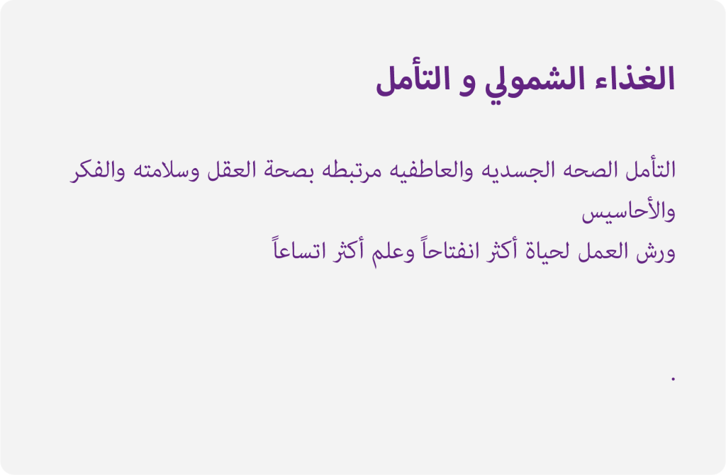 إن أجسادنا هي الوسيلة الوحيدة لدينا التي تحملنا في رحلة حياتنا. هي وسيلة مقدسة وأي مدخل سلبي سيؤثر على الانتاج الفكري. والتغذية الشمولية هي التي ستحقق التوازن بين جميع جوانب وسيلة النقل هذه وترفع من مستوى الوعي في خياراتك الغذائية وقيمة ذكاء جسمك في التعامل مع تلك الخيارات …. اِقرأ المزيد.